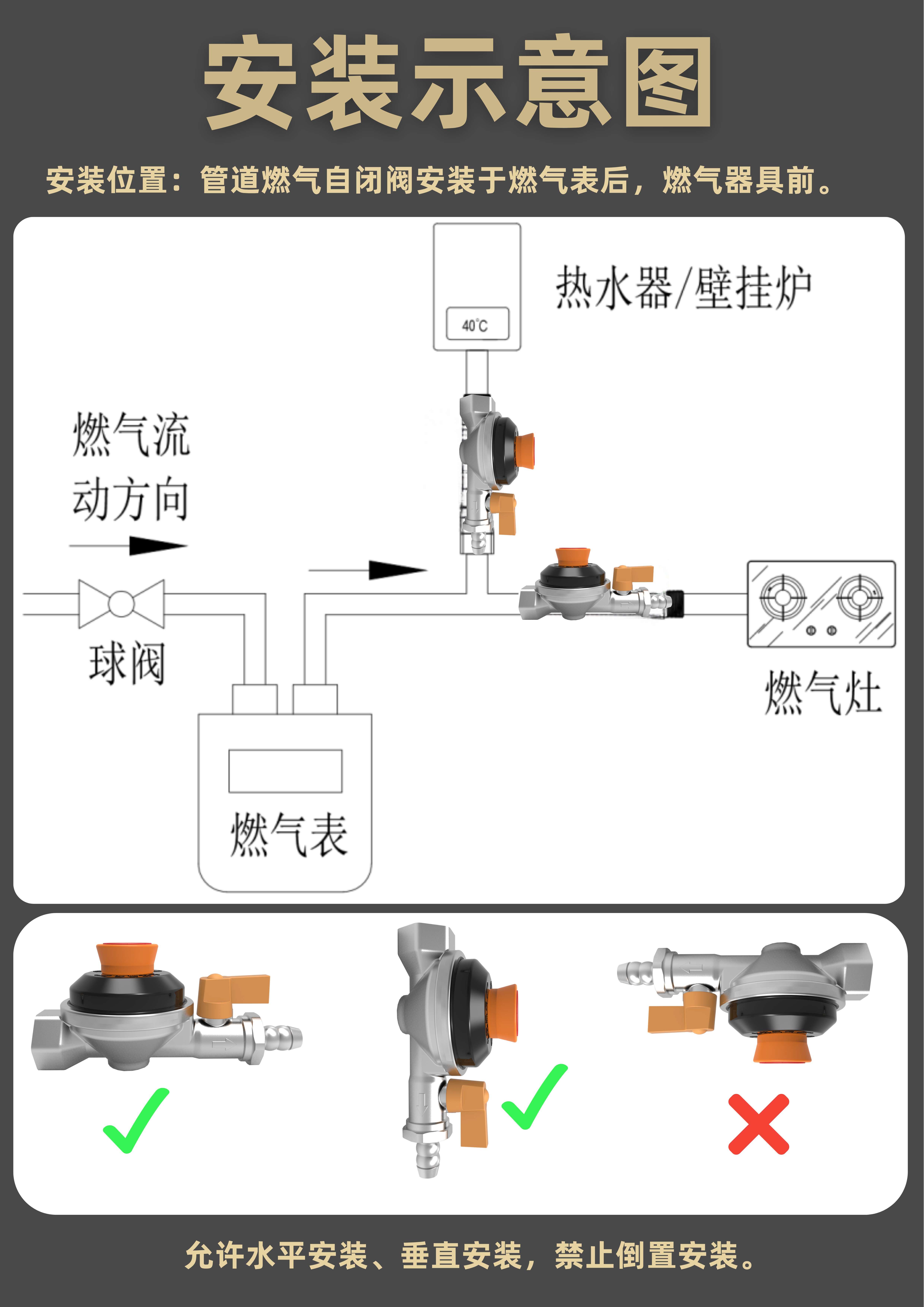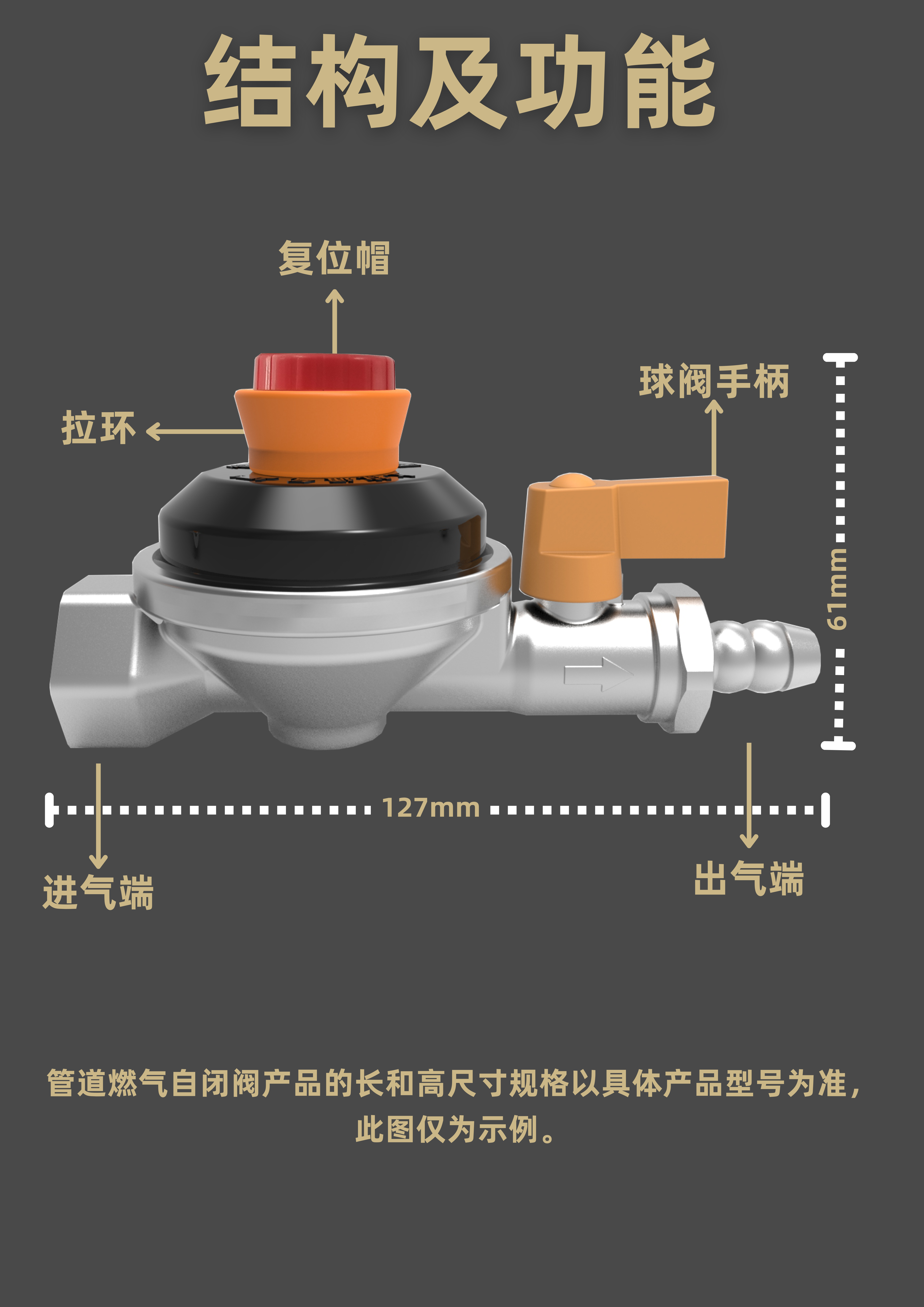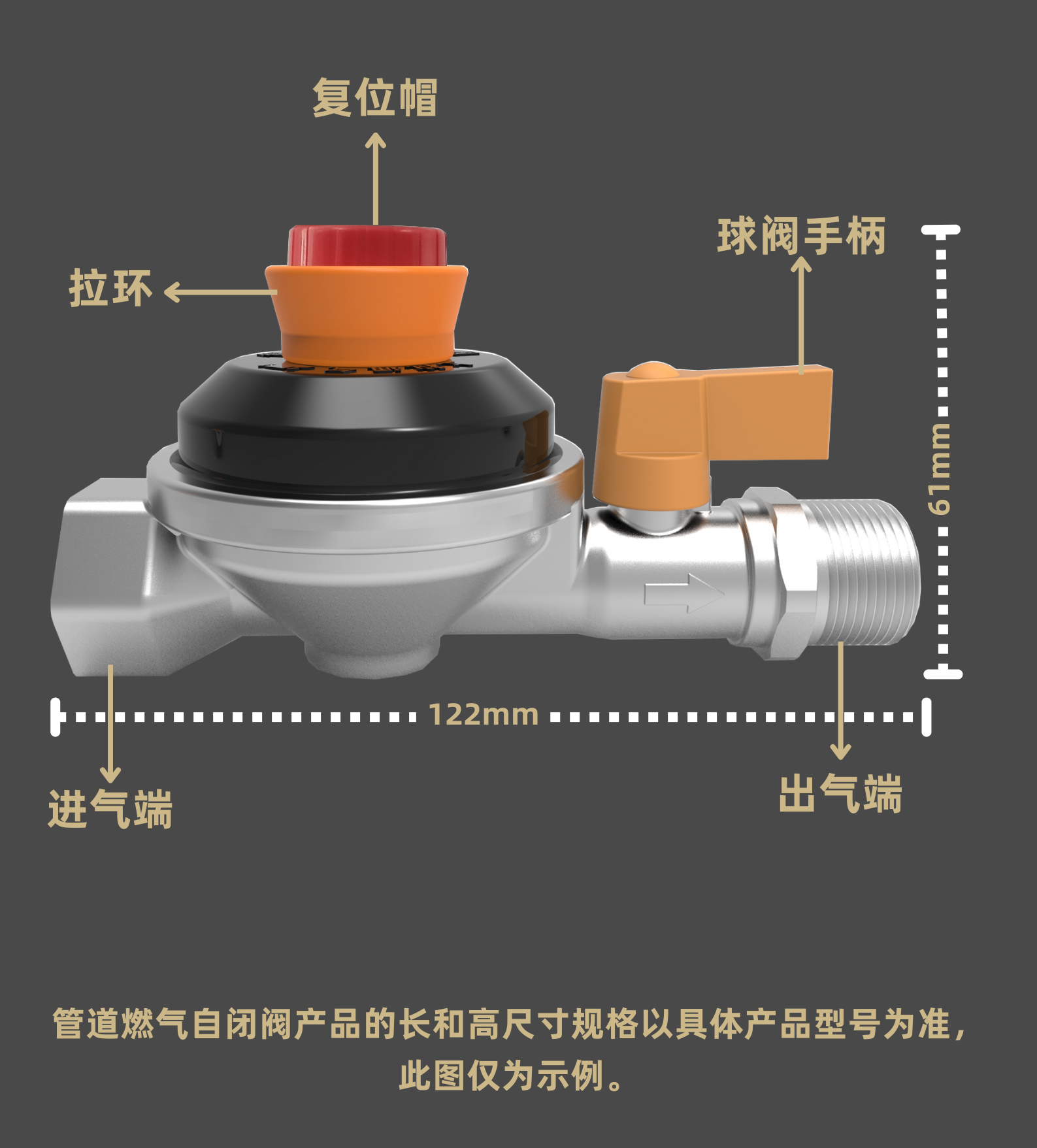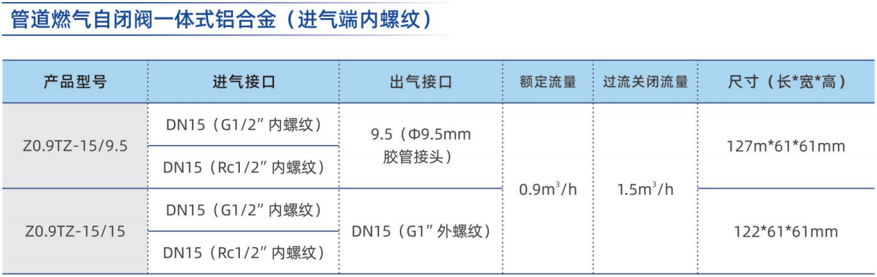 产品名称:管道燃气自闭阀一体式铝合金(进气端内螺纹)